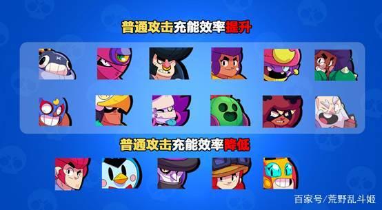迪克、塔拉、公牛、雪莉、基恩、罗莎、普里莫、阿渤、艾魅、斯派克、妮塔、麦克使用普通攻击时充能效率提升,柯尔特、P先生、莫提斯、杰西、麦克斯普通攻击充能效率降低。