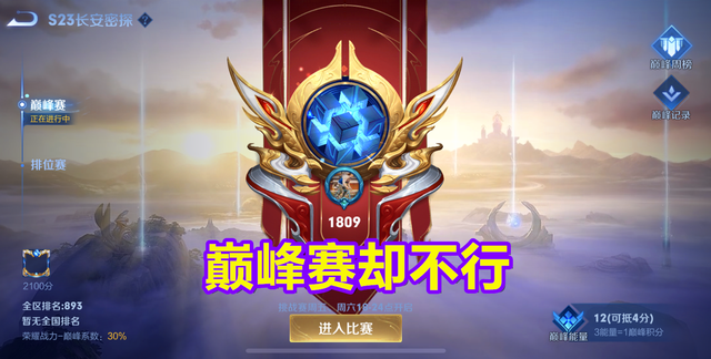 在只能单排的巅峰赛里,是真正的有什么实力就会在什么段位,你是无法通过能量来上分的,因为你上的分上去了,实力却没有跟上的话,马上就会掉下来,这就是本质上的区别。