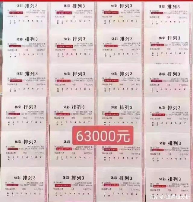 今天就来给大家带来一张少数玩家打的票。这张图片由24张组三票组成,每张票的都采用倍投的方式进行投注,除右下角最后一张票为5倍之外,其他的23张票都采用全包0~9的所有数字,并且都为15倍投注,单张投注额为2700元。投注总倍数350倍,投注总金额为63000元整。这样的玩家少见吧?