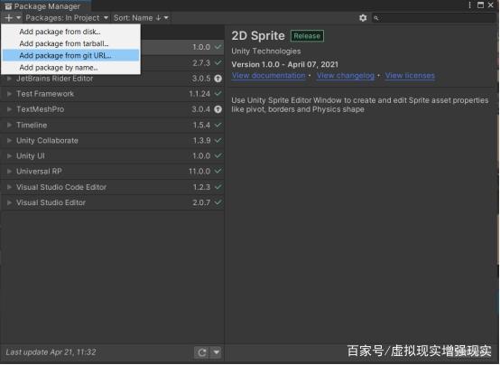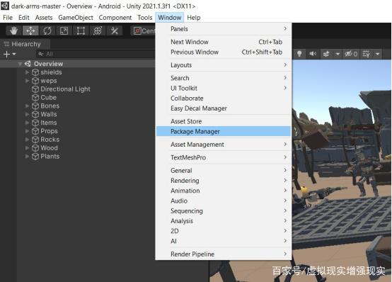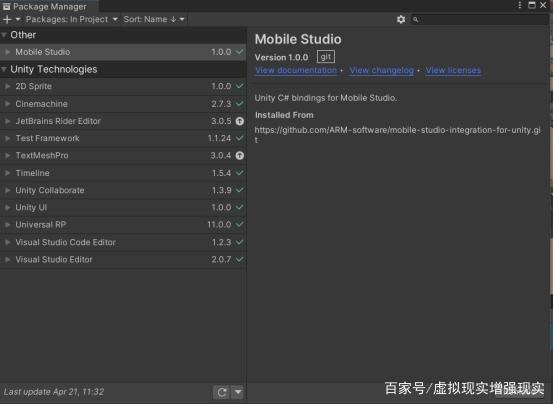 Unity编辑器版本2018.4 LTS及更高版本支持Arm移动游戏室包。通过Unity软件包管理器安装软件包,如下所示: