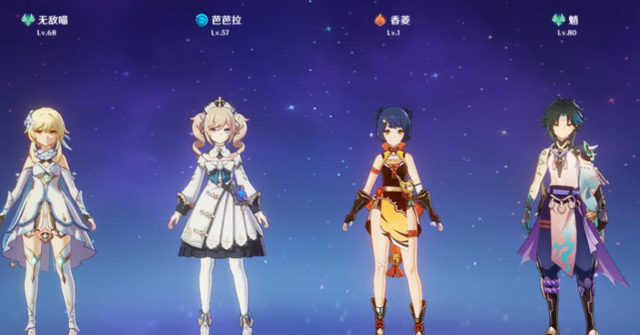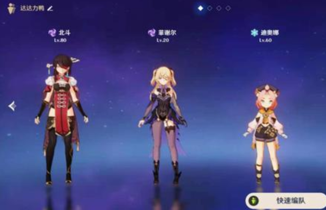 现在我习惯了优菈搭配钟离加阿贝多,后面配个能回血就行。优菈77、钟离、阿贝多用起来很爽,现在刷苍白套,只需要有盾的角色就行了,反正有冲击波。优菈起手E切脱手角色放技能,然后长按EQEAAAAA长按EAA!