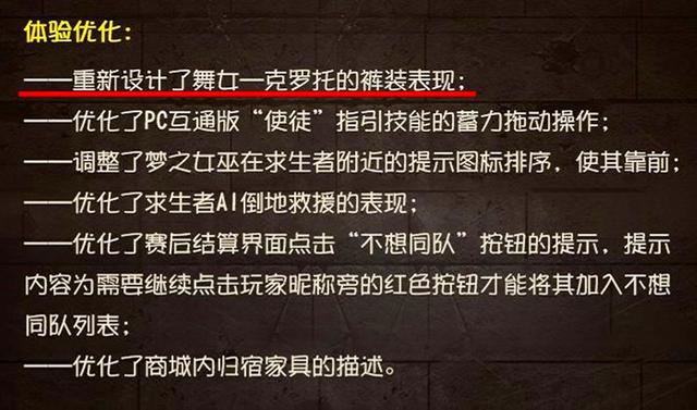 本次的周四版本更新内容中策划提到了对于“克罗托”的二次优化,原话描述为“重新设计了克罗托的裤装表现”。