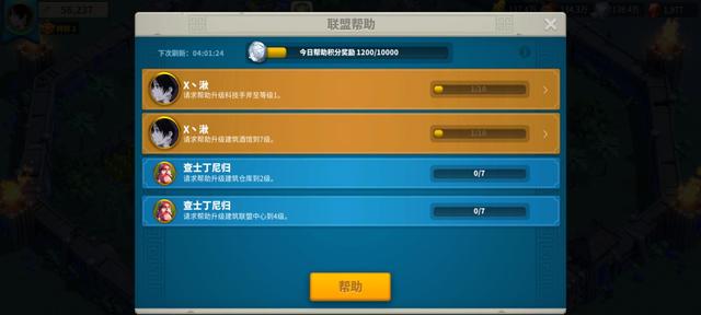当然在联盟中你可以发起求助,在给城池建筑升级的时候,利用求助,这样同一联盟里的人看到后给足帮助,大大缩减升级所用的时间,而且你也可以帮助别人,还能获得联盟奖励和完成支线任务,岂不美哉。