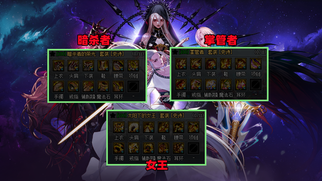 接下来淘汰的是女王、暗杀者、掌管者。女王应该是最坑的一套,每件装备需要增幅/强化+10,然而现实中完全没遇到过。同时队长查看情况太麻烦,基本看到直接忽略。
