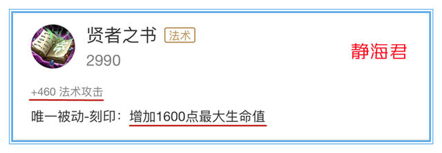 +460法术攻击力刻印被动→提高使用者1600点的最大生命值我们再来看一下贤者之书的这两个属性: