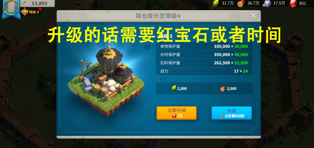 在这个游戏中,玩家们需要大量的时间去度过前期,而且越往后期则需要更多的时间,比如升级医院、城墙仓库、兵营、斥候营地、学院、酒馆等等,这些在升级过程中可以选择使用红宝石或者时间,而且随着自己的国家的等级的提高,需要的时间以及红宝石会越来越多,就比如我升级了一个5级的市政厅,则需要一个小时的时间,非常耗时。如果不想等待的话其实完全可以花钱去替代升级所需的时间,不过越往后面氪金的力度也会越大。