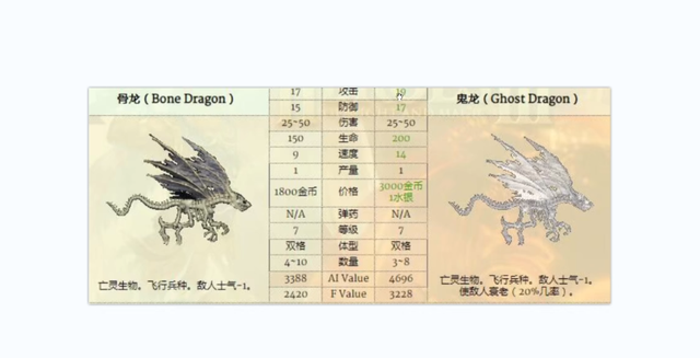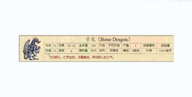 这是英雄无敌三中的骨龙。攻击力也是按照同比例换算出来的。技能和二代骨龙是完全一样的。两只龙的攻击速度全部都是一秒一次。