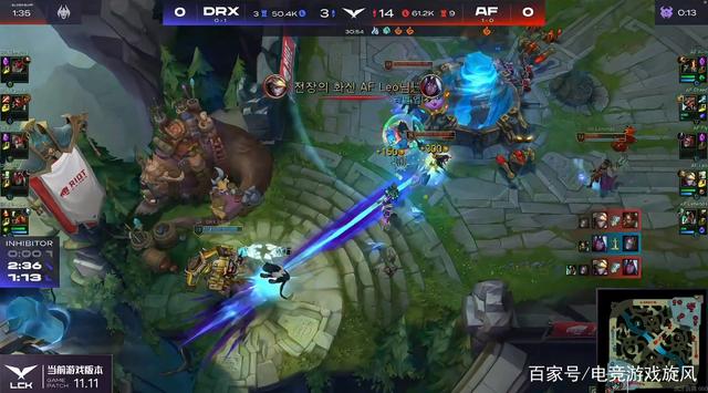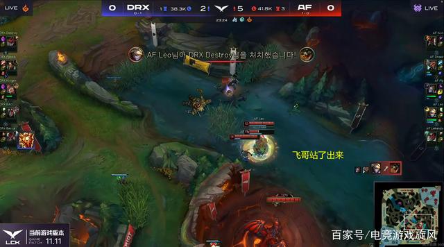 虽说在关键的火龙魂团战中,Kiin船长有些上头了,TP落地的位置过深被DRX换掉,但好在飞哥发条站了出来,大招拉到了DRX野辅,Becca泰坦被瞬秒,Pyosik豹女被打残,DRX无力争夺小龙,AF轻松控下火龙魂再拿大龙buff!