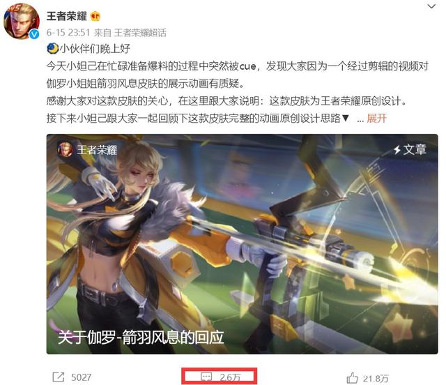 目前这个事情已经过去了一天多,不但两边的玩家大规模“参战”,甚至就连其他游戏官方也被卷入其中,大有说不清楚不罢休的架势。但是这个事情可能还真说不清楚……单说王者荣耀官博下的2.6万条评论,两边几乎势均力敌,谁也压不过谁。