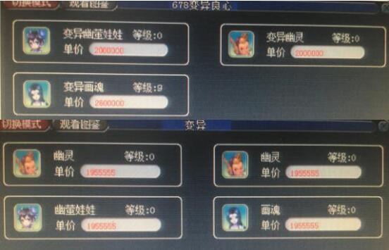 看到上面的这两个摊位了吗?这两个摊位中有一个是假的变异摊位,大家知道是哪个吗?卖假变异的摊位就是下放的这个摊位,正常的情况下,真正的变异召唤兽在新版的摊位中会直接显示出变异XXX召唤兽的字样;假的变异是需要点进去才会看到变异XXX召唤兽的,这里的“变异”是骗子摊主自己加上去的。