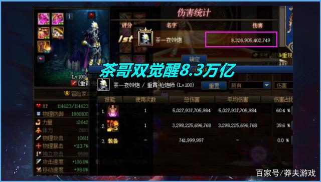 虽然宝哥一套技能打8.3万亿已经很夸张了,但还有更夸张的,茶哥红19手炮、携带9件改造强势出击,修炼场初露身手,你猜怎么着?双觉醒伤害刚好也是8.3万亿!