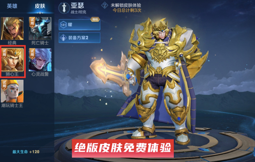 不过需要注意的是,这个体验是有次数限制的。每天系统会赠送三张试用券,一张试用券试用一次,试用券使用完之后,还想再体验就只能等第二天再赠送试用券了。这个福利其实比较适合想入手某款皮肤,但是又对皮肤的手感不太放心的话,就可以通过这个模式先来体验,然后再决定入不入手皮肤了。