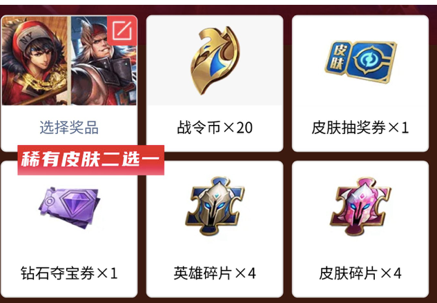 这次的活动一直持续到25日结束,活动时间为一周,玩家可以选择两款皮肤的其中一款加入奖池,而除了皮肤以外,奖池内还有战令币、皮肤碎片、英雄碎片等奖励,抽到皮肤的概率大概是2%,大家可以根据自身的需要来决定要不要参加这次活动。