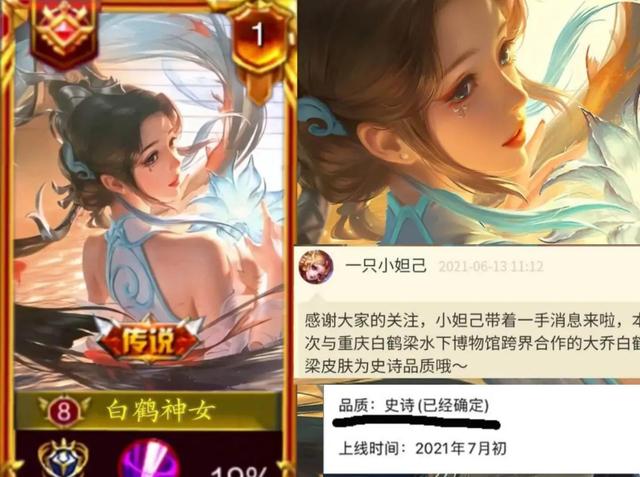 上面说到了传说级皮肤,引起了玩家们的反感,就是在如此大的反感之下,玩家们也希望这款皮肤再次吃传说,主要还是因为它的颜值比较高,那么这款皮肤是史诗皮肤,目前官方已经官宣。