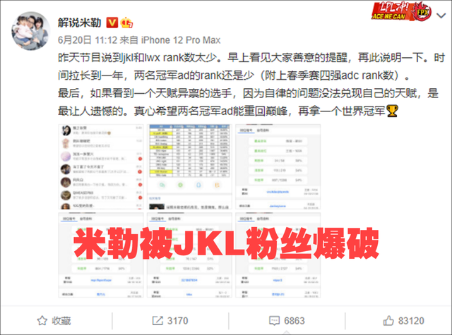 其实米勒当时评价的不仅仅只有JKL,还有FPX战队的ADC选手Lwx,但是只有Jackeylove的粉丝把米勒冲了,而Jackeylove的粉丝则认为米勒在乱开破,不懂还要瞎评价,因为大家觉得阿水的表现很好,就算不需要过多的Rank也可以有很好的状态。