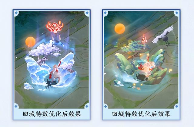 公孙离-祈雪灵祝自上线之后就加入了优化计划,之前王者荣耀官方对这款皮肤的海拔和局内特效进行了优化,优化成果还是不错的。今天,王者荣耀官方又爆出了这款皮肤回城特效的优化成果,优化前的回城特效太单调,而优化后的回城特效色彩鲜艳了很多,原先白白的雪树变成了生机勃勃的绿树,原先的冰山也变成了青山,还有一个仙鹤在公孙离头顶飞过,整个氛围非常有春天的气息。