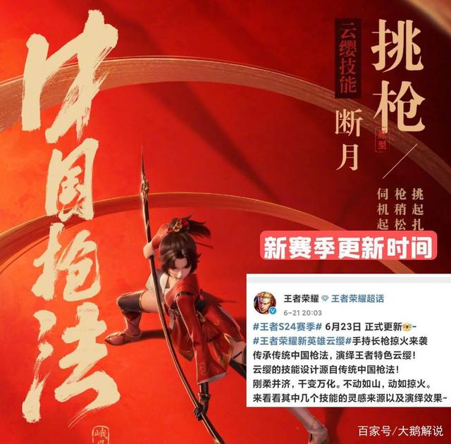 最近,官方发布微博宣称王者荣耀S24赛季将于6月23日正式更新,也就是说,在23号当天,各位玩家就能够体验到新赛季的内容了。