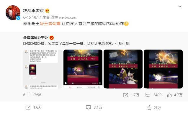 这不,“隔壁老王”又开始闹事了——《决战!平安京》官博最近转发了一条动态,内容是关于隔壁农药伽罗皮肤“箭雨风息”抄袭自家白狼皮肤“森林之姬”的爆料,官博还为这次转发配上了犀利的文字:感谢老王让更多人看到白狼的原创特写动作/微笑。