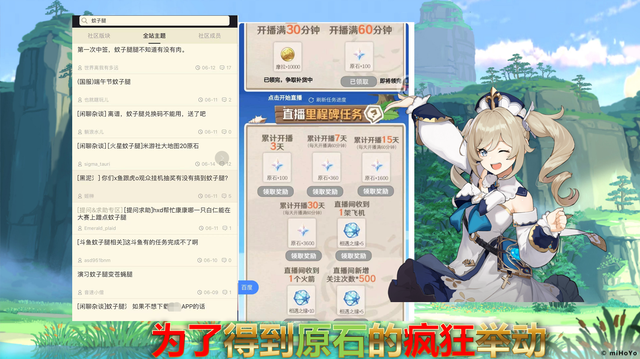 这不,原神1.6版本开始之前,就有很多网友在贴吧、游戏社区等敌方发布“米哈游蚊子腿”的帖子,意思就是很多与原神联动的APP,通过签到,就能获得一定的原石。还有一部分就是各大平台招募主播,只要完成了一定的直播任务,就能获取原石。一时间,众多玩家为了薅原石,又是签到,又是注册成为主播。
