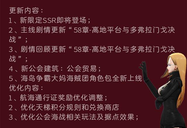 再有就是海岛争霸的新增,将会添加大妈海贼团的角色包。难得啊,间隔了那么久,终于更新了新的角色。白团的表现已经有目共睹,所以大妈团这里很有可能会称霸海岛。