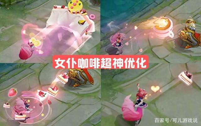 妲己的女仆咖啡也是进行了史诗级调整的。我们从特效就能看出来,原皮的女仆咖啡五颜六色,以糕点作为技能,颜色粉红色,十分的少女心。