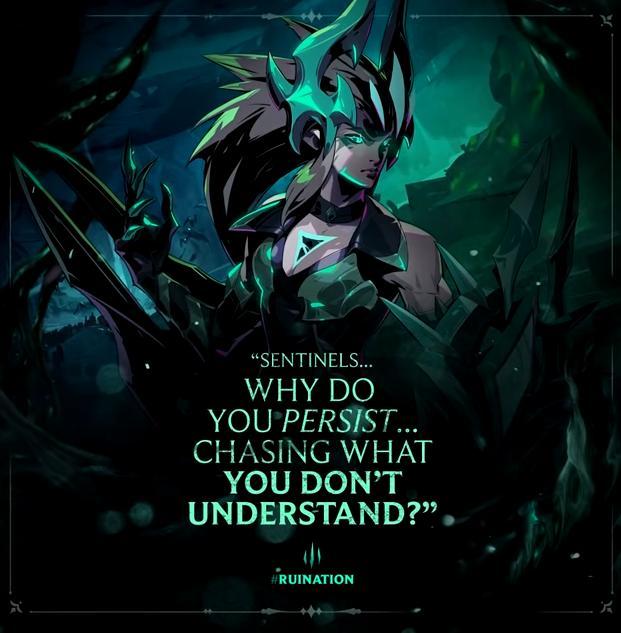 英雄联盟的官方脸书,已经将头像换成了佛耶戈进行预热,而且也将封面照片更换成大破败的图片。此外,他们在破败军团希瓦娜的插图配文里明确地提到了,“哨兵啊,为何你执意追寻不解之物”。