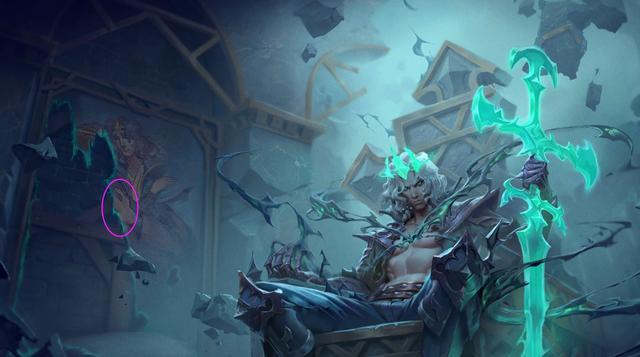 随着光明哨兵活动上线,英雄联盟美服官网则是搞了一个解谜预告游戏。我们打开美服官网后,可以发现佛耶戈短篇小说的插画出现在其中,他静坐在一张王座上,墙壁上则是有旧日自己的照片。照片是残缺不全,我们看不到伊苏尔德的模样。