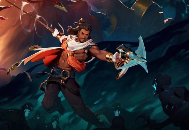 而在所有谜题完成后,我们就能够获得这次光明哨兵活动的海报图,海报图的背景和佛耶戈正是官方社区帐号的背景照片和头像。而右侧的几个英雄成为了这片黑暗之地的光芒,我们能够看出有卢锡安、赛娜、格温、格雷福斯、薇恩和一个陌生角色。这个角色就是新英雄阿克尚,和之前爆料的草稿图一样,他右手使用绳索,左手使用圣枪。