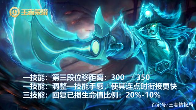 曹操1技能手感优化,同时第三段的位移稍稍加长(300-350),但代价却是开启大招时的回血量由之前的已损生命值20%调整至10%。怎么说呢,曹操的1技能,单看距离调整堪称一次侮辱式加强,牺牲大招的强度换的这般调整,实在有些想不懂。