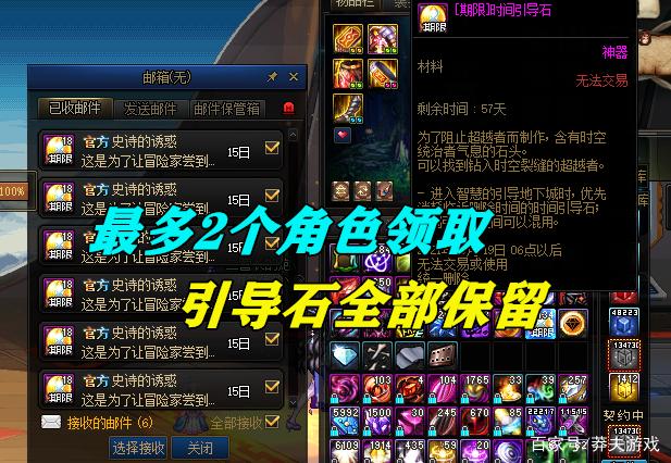 4、删除再恢复角色后,原角色上的“期限引导石”依旧存在,这个引导石价值比较高,因为下个版本很有可能再次上线史诗之路,所以引导石肯定是越多越好,大家可以尽量将2个角色都积攒更多引导石。