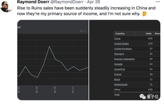 至于为什么说中国玩家拯救他,是因为从今年开始,Rise to Ruins在中国区销量飞速蹿升,现在已经超过全球所有其他地区销量,稳居第一。