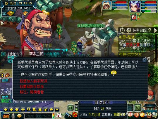 人物等级只需要≥级且≤50级,就可以在帮派主管(长安384,270)加入新手帮派,完成新手帮派的任务后,可以获得经验、储备金、还有储备帮贡。大家前往别小看这些奖励,要知道新区这些东西有多匮乏。