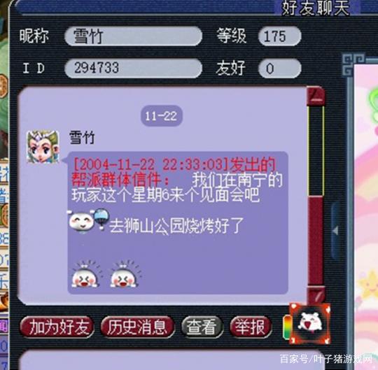 结果打开一看,消息的发布时间竟然是2004年11月22日!内容则是邀请他参加南宁地区的玩家线下聚会。#39和#47这两个表情,也是很早就有了。