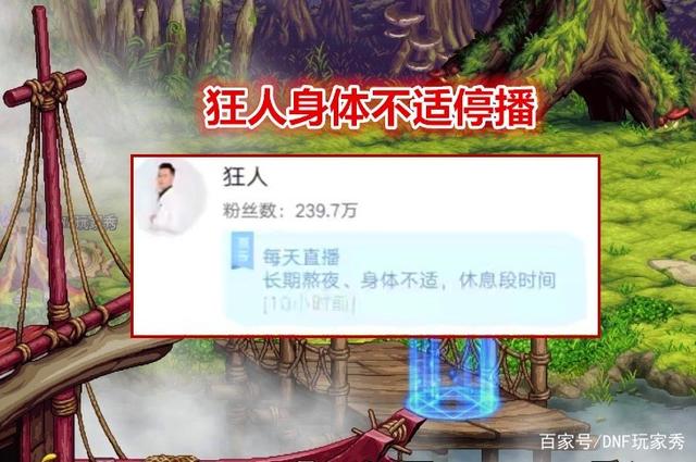 奥兹玛团本开启,狂人却因身体不适,停播了一段时间,确实,作为夜间直播的主播,每天熬夜直播,一言不合就通宵,对身体的伤害不小,旭旭宝宝也因为熬夜过多,决定在7月停播,休整一段时间;狂人最初的本意是停播一日,但最终停播时间近1个星期,差点连周年庆都错过了。