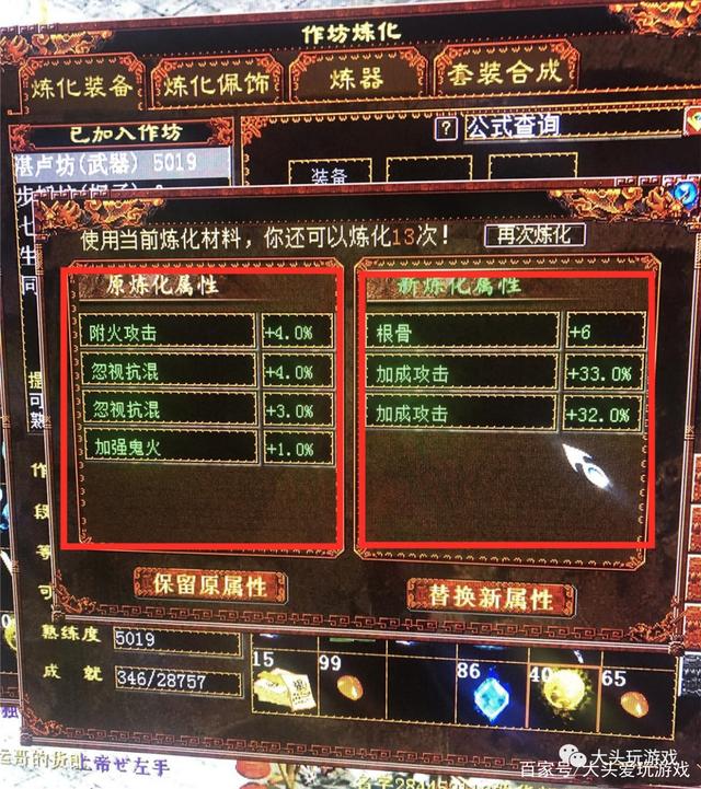 看到没有这个炼化真的和熟练度没有太大关系,才5000多,兄弟们想翻身的可以把任务的材料攒着,多了就炼一下,或许就奔小康了。