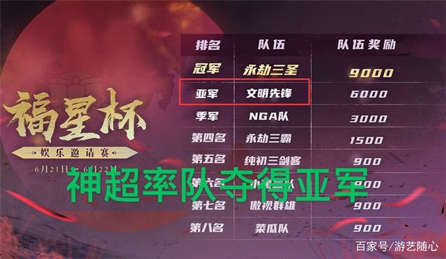 在这场武侠吃鸡比赛中,神超带领的"文明先锋"获得了105分的成绩,成为了比赛的第二名。不过虽然只拿下第二名,神超却拿下了77次击杀,超越了第一名46击杀数将近一倍,十分给力。