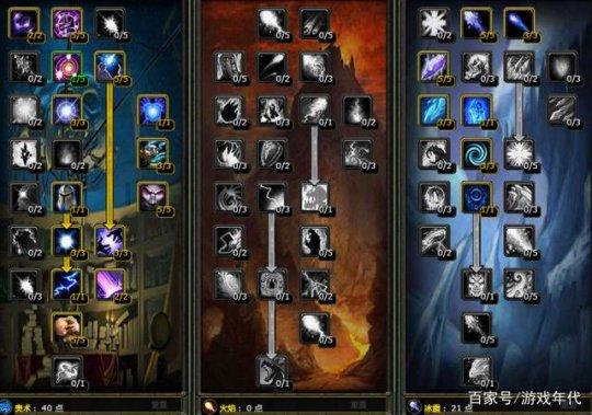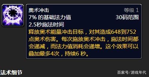 首先是天赋点法,其实就是比较传统的40和21奥冰天赋,冰系要点出急速冷却保证有双血脉,刺骨寒冰的6%冰系增伤可以根据需要换成3点强化暴风雪,冰系不需要点极寒延伸,因为主力输出技能奥术冲击射程只有固定的30码。奥系把强化输出、降低仇恨、提高回蓝等系列天赋点出即可,这一套下来伤害加成非常可观。