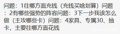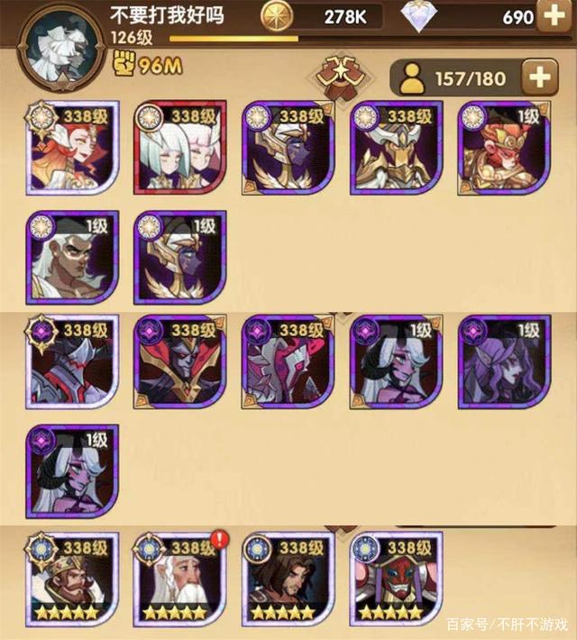 然后是强势阵容,这个阵容疯子分享过很多次,详细的版本和简略版本往期都有。但鉴于号主当前的英雄池,一队的练度都没有达标,所以提升一队强度,慢慢扩充英雄池会更加重要。