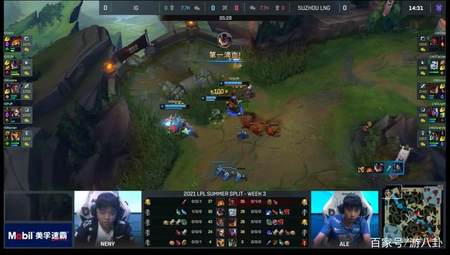 在今天的第一场比赛中,IG战队的团队决策和配合都出现了不小的纰漏。在五分钟的时候,IG战队选择三包一来针对LNG战队的阿乐。可是puff在辅助游走的情况下,被对面的下路双人组逼出了闪现。EZ原本是IG战队的中期输出主力,却一直未能站出来。反观neny在队友的帮助下,并没有压制住阿乐的akl,甚至被akl压在塔下。