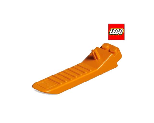 但是拆件器会帮你解决很多问题。我们先说乐高的拆件器主要是什么样子吧。一段是平且尖锐的,像一个钝刀。另一端有两个凸点,然后离这两个凸点不远的地方有一个十字轴,这个十字轴长度不到两个单位。它们通常是橙色的,并且和乐高积木的材质相同。