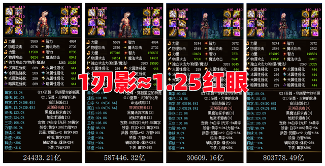 红眼照样打不过刃影,1个刃影相当于1.25~1.37个红眼。虽然并没有剑帝夸张,但这已经相当于一次职业平衡的提升了。