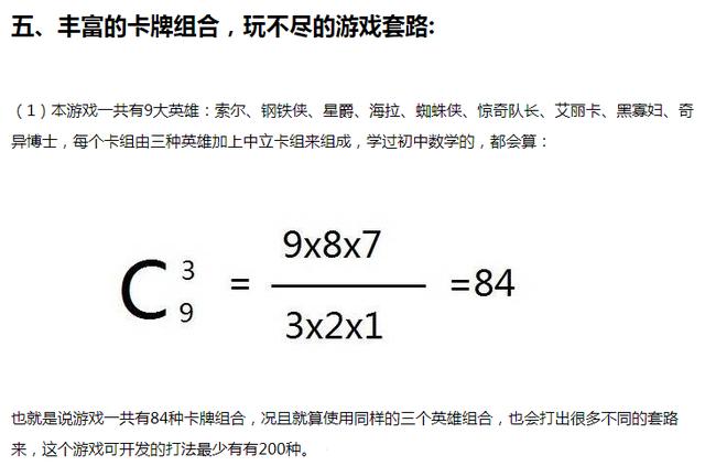 最重要的是,在游戏中玩家可以将自己拥有的卡牌组成牌组,以应付各种情况的战斗。索尔、钢铁侠、星爵、惊奇队长等是目前最火的9大超级英雄卡牌,每个卡组由三种英雄加中立卡组进行组合,虐哥计算后得出一共可编排出84种卡牌组合,就算主C的三大英雄相同,还能打出不少套路,保守估计打法至少有200多种!