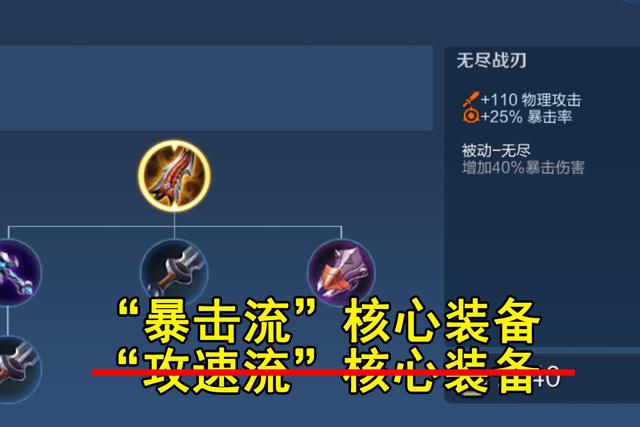 无尽战刃可以增加暴击率和暴击效果,影刃则是可以仰仗暴击增加攻速,所以影刃和无尽战刃搭配是完美的,如果玩“暴击流”马可波罗,那么就可以直接放弃电刀了,改出影刃可以弥补攻速不足。影刃和无尽战刃也就成了“暴击流”的代表装备。