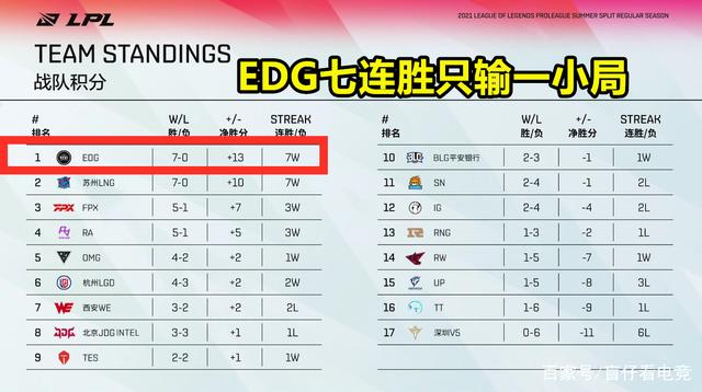 前言:2021LPL夏季赛常规赛已经来到了第四周的赛程,仍有两支战队是未尝一败,它们分别是EDG、LNG,而EDG明显要比LNG出色太多。同样是七连胜,但EDG仅输了一个小局,小分达到了13分,而LNG则只有10分。毫不夸张地说,EDG夏季赛的状态,要比春季赛还要出色。有网友统计了一项数据,更是证明了EDG下路双人组是目前LPL最强下路双人组。