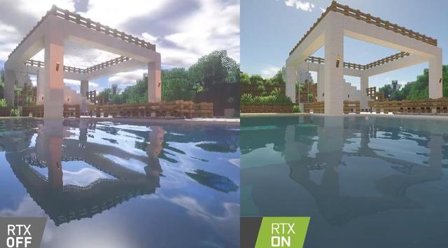 首先我们来欣赏MC的高清画质,可以看出来光追开启后的水质要更好一些,因为太阳光的照射,我们无法看到清澈的水底,当然如果你往前走一步的话,就可以看到深处的地板,说实话MC这款游戏的MOD不比GTA5少,画质增强之后确实有3A大作的意思,这么多年了该游戏依旧历久不衰,也算是经典游戏中的老大哥了。