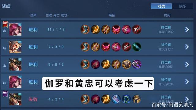 其实我是不建议在这个赛季玩马可波罗上分的,我自己玩马可已经1000多局了,但是该放弃的时候还得放弃。至于上分的射手,我这里推荐两个,第一是黄忠,第二是伽罗。黄忠加强了被动,被动叠起之后攻击力提升比较明显,前期对拼其他射手可以说是毫无压力,至于伽罗凭借手长优势,能拖到后期离胜利也就不远了。虽然说这两位射手都没有位移,但是操作简单加输出不低,上分还是挺合适的。
