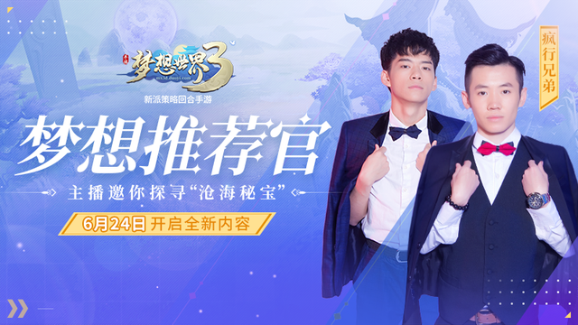 6月24日,梦想大陆“沧海秘宝”横空出世。直至今日,已有无数少侠趋之若鹜,赚得盆满钵满。此时的你是否还在犹豫不前?不知如何开启这场探宝之旅?若是如此,则不必太过担心。因为此次全新内容上线时段,梦想大陆有幸邀请到了两位人气主播——“斗鱼·杰克螳螂”以及“虎牙·疯行兄弟”,他们将作为“梦想推荐官”,带着少侠们一起下沧海、寻秘宝!只要在7月1日之前,前往这两位“梦想推荐官”的直播间,你就能受益匪浅。到那时候,沧海秘宝什么的,自然是手到擒来!
