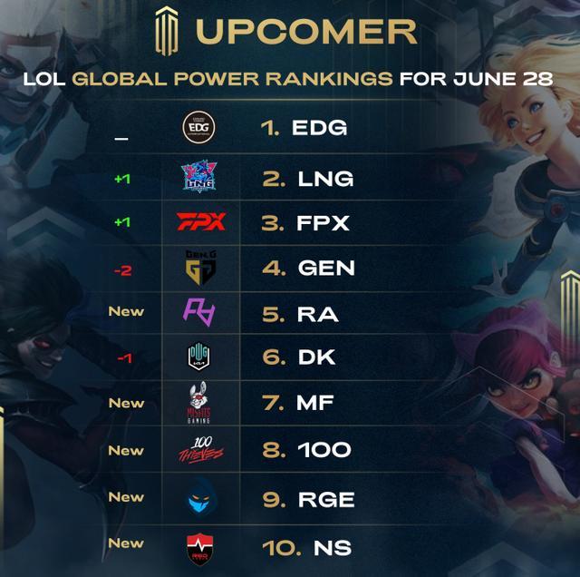 随着6月接近尾声,2021年的LPL夏季赛常规赛,已经迎来了第四周的赛程了,比赛进入到白热化阶段。外媒UPCOMER在6月29日,发布了最新一期的英雄联盟全球战力排行榜,对世界范围的队伍进行实力排名,这次的排行榜上出现了一些新队伍。