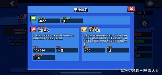 在《荒野乱斗》的所有英雄体系中,"喷子类"无疑是人气最高的选择。但相比于雪莉和公牛,雪大莉还是更中意于达里尔这两个英雄,因为他拥有比公牛更灵活,比雪莉更高伤害的特性,用他上分如坐火箭!