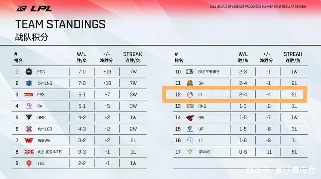 纵观这场比赛,IG打得是非常不好的,并不是没有获胜的可能性,而是IG总是会通过莫名其妙的一波团战将优势送出去。并不止这场比赛,IG给人的感觉是整个队伍已经不会玩游戏了,打得太乱了。而输掉这场比赛,IG的战绩来到2-4,季后赛前景堪忧,甚至可能继续惨败成为暗黑五天王。